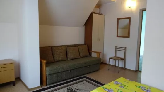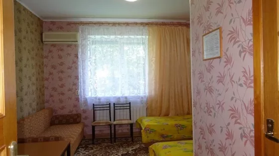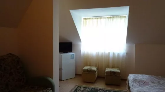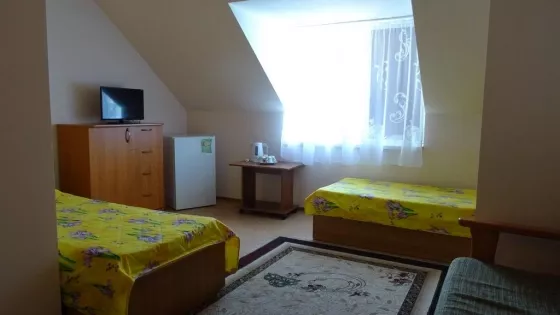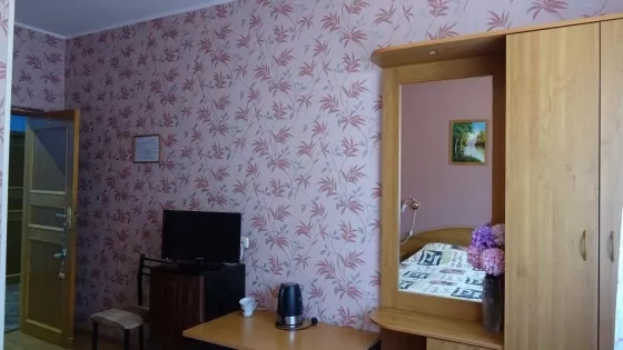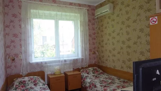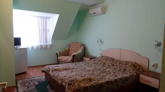 В номерах холодильник, ТВ, сеть Wi-Fi, санузел, душ, сплит система.